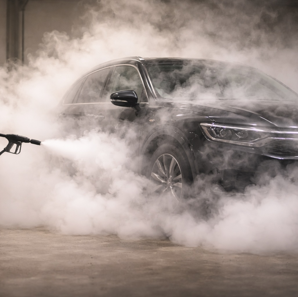 La vapeur est projetée à haute température mais avec une très faible quantité d'eau et une pression contrôlée, ce qui permet de décoller la saleté sans agresser les matériaux. Contrairement à certains lavages traditionnels qui utilisent des brosses ou des jets d'eau très puissants, le nettoyage vapeur réduit fortement le risque de micro-rayures sur la carrosserie.